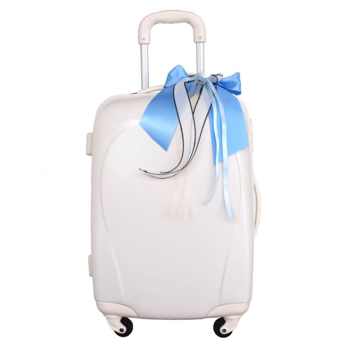 NstNastasia Βαλίτσα Ταξιδιού Βάπτισης Εκρού Φιόγκος Σιέλ 1714