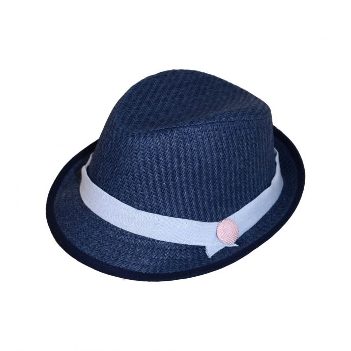 NstNastasia Βαπτιστικό Ψάθινο Μπλε Καπέλο Σιέλ Τρέσα Κουμπί 4078