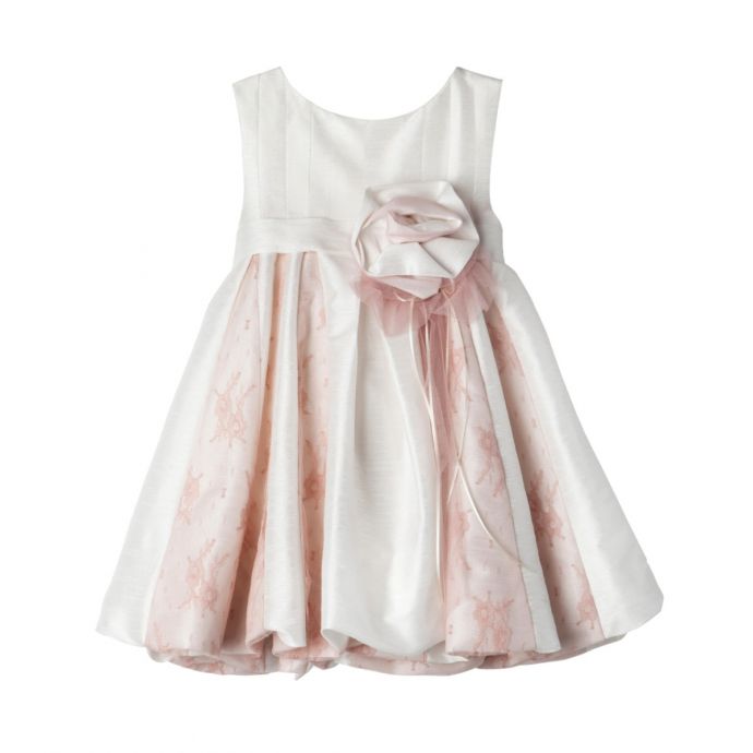 Βαπτιστικό ρούχο σαντούκ με κανονάκια από ροζ δαντέλα σαντιγύ στην φούστα και χειροποίητο λουλούδι στην μέση.
