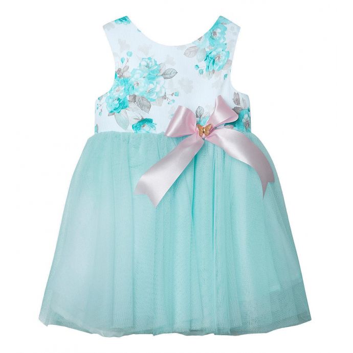 Βαπτιστικό φόρεμα από άκουα βαμβακερό φλοράλ μπούστο και άκουα βαμβακερή τούλινη φούστα.