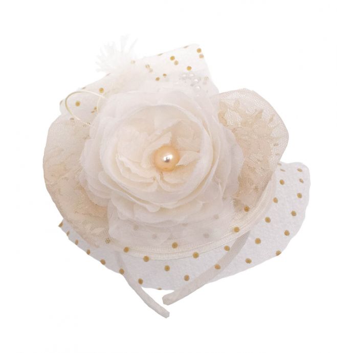 Κουάφ βάπτισης από ψάθινη βάση πάνω σε στέκα με πουά τούλινο βέλο, εκρού λουλούδι, δαντελένιο φιόγκο και πέρλες. Ελληνικής παραγωγής.