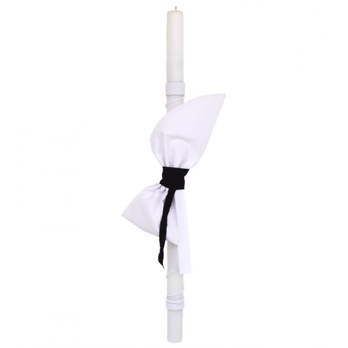 NstNastasia Λαμπάδα Βάπτισης Κάθετος Λευκός Φιόγκος Μαύρο Δέσιμο 0552