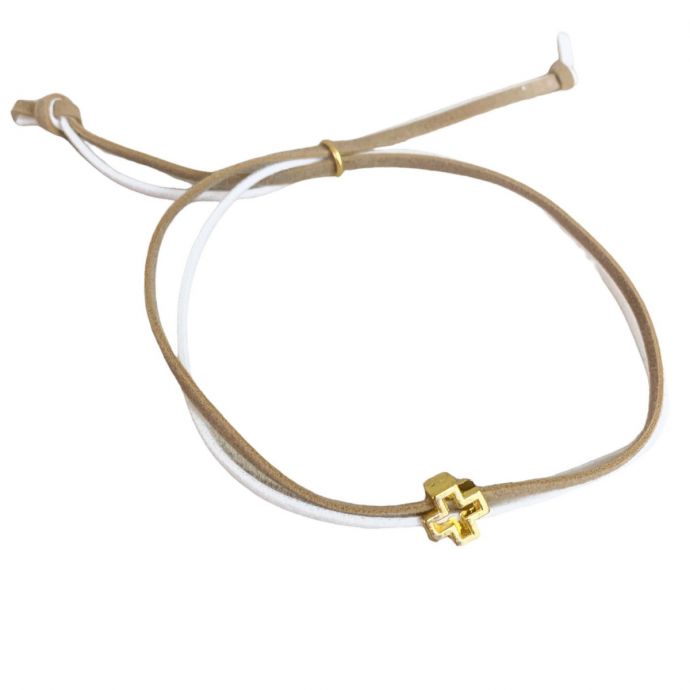 Μαρτυρικά βάπτισης βραχιόλι από σουέντ δέρμα σε εκρού καφέ χρώμα, με χρυσο σταυρό, 50 τεμάχια, ελληνικής παραγωγής. Χρειαζόμαστε 5-7 εργάσιμες για την κατασκευή τους. Απαραίτητα για να γίνουν οι καλεσμένοι της βάπτισης μάρτυρες του μυστηρίου.