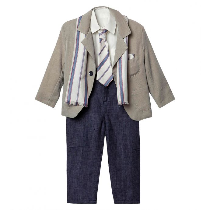 Βαπτιστικό ρούχο. Σακάκι από 70% βαμβάκι 10%μετάξι και 20%πολυέστερ. Βαμβακερό πουκάμισο και λινό παντελόνι.